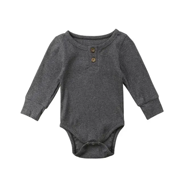 Brand New Newborn Infant Baby Girl Boy Ribbed Bodysuit Ruffle One-Pieces Solid Jumpsuit Long Sleeve Outfits Spring Sunsuit
