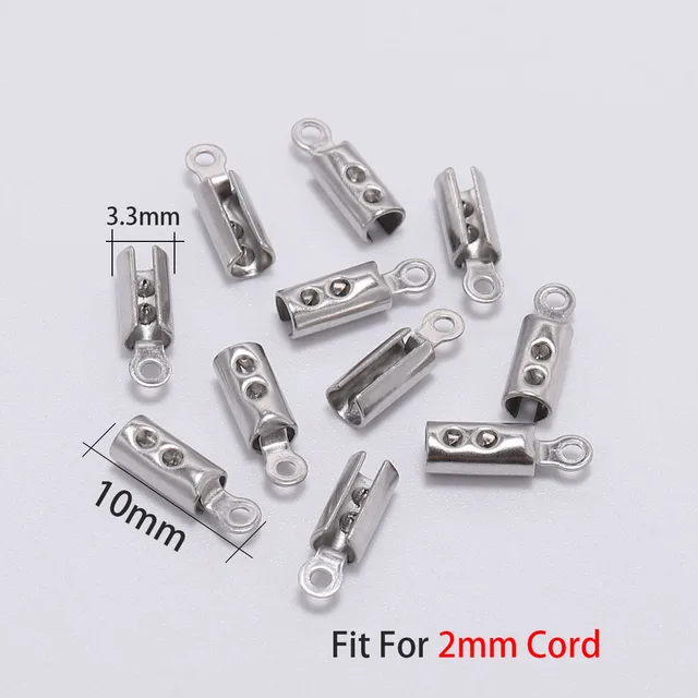• Stainless Steel Cords Crimp End Beads Caps Leather Clip Tip Fold Crimp Bead Bracelet Connectors For Jewelry Making Finding