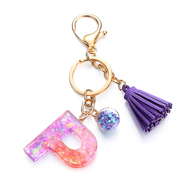 • Tassel Keychains A-Z Letters Initial Resin Key Chains Rings Handbag Pendant Cute Car Keyring Charm Bag Accessories Gifts