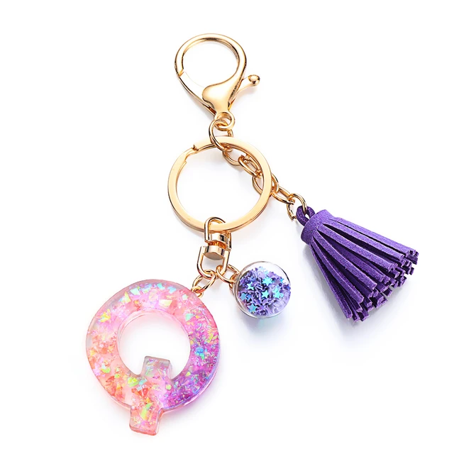 • Tassel Keychains A-Z Letters Initial Resin Key Chains Rings Handbag Pendant Cute Car Keyring Charm Bag Accessories Gifts