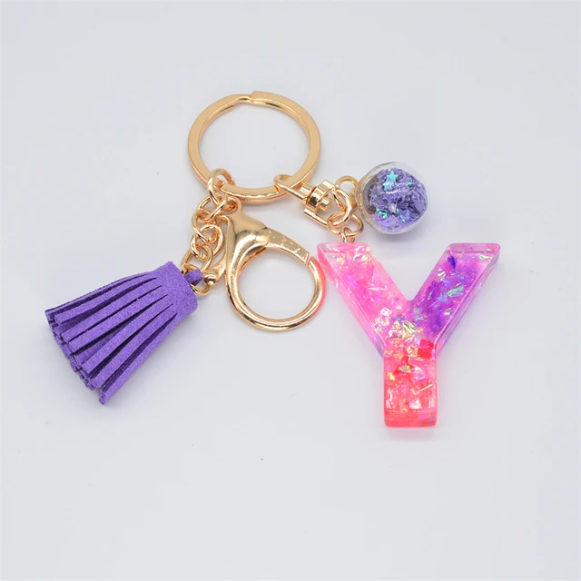 • Tassel Keychains A-Z Letters Initial Resin Key Chains Rings Handbag Pendant Cute Car Keyring Charm Bag Accessories Gifts