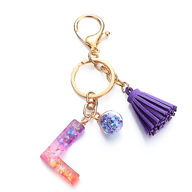 • Tassel Keychains A-Z Letters Initial Resin Key Chains Rings Handbag Pendant Cute Car Keyring Charm Bag Accessories Gifts