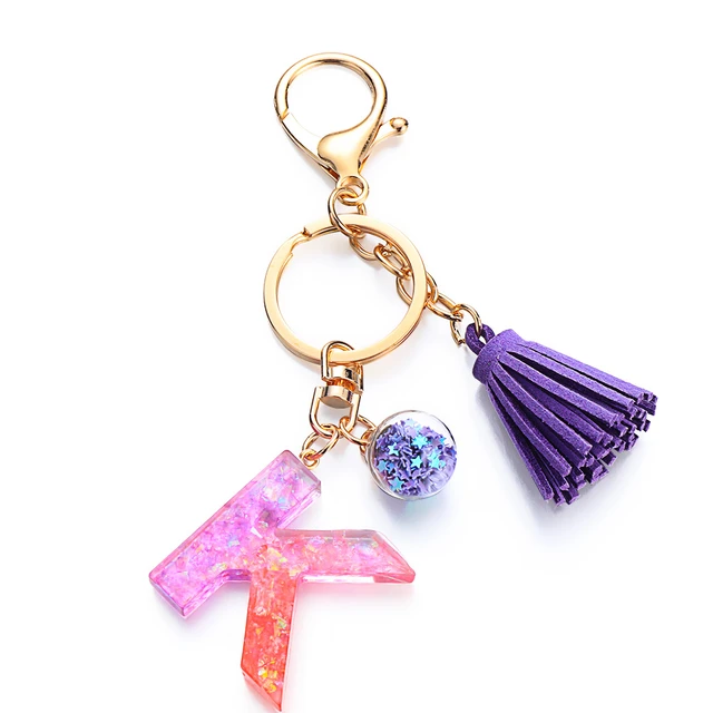 • Tassel Keychains A-Z Letters Initial Resin Key Chains Rings Handbag Pendant Cute Car Keyring Charm Bag Accessories Gifts