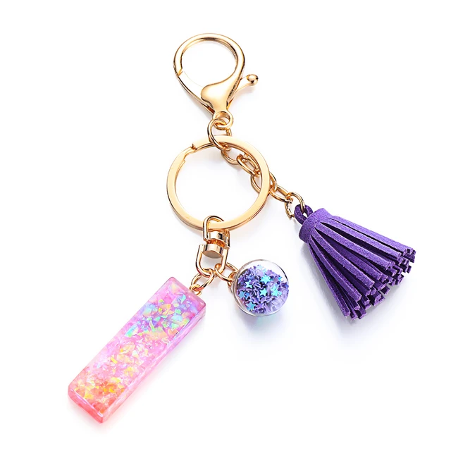 • Tassel Keychains A-Z Letters Initial Resin Key Chains Rings Handbag Pendant Cute Car Keyring Charm Bag Accessories Gifts