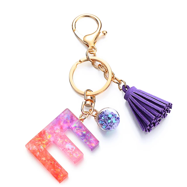 • Tassel Keychains A-Z Letters Initial Resin Key Chains Rings Handbag Pendant Cute Car Keyring Charm Bag Accessories Gifts