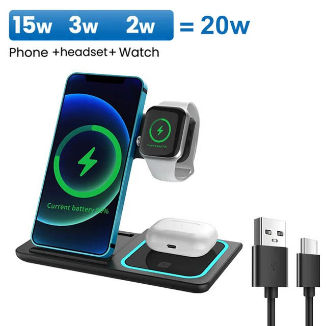 3 in 1 Wireless Charger Stand for Samsung Galaxy Z Fold3/Z Flip3/S22/S21/S20/S10/S9/S8 Plus Note20 Watch 3 4 Classic /LTE/BT Active 2/1 Buds Pro Live Wireless Charging Station for iPhone Phone AirPods Pro/2