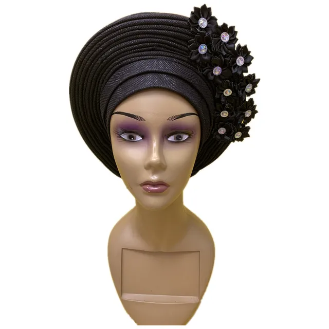 African Turban Cap With Flower On Top Nigeria Head Wrap Women Cap Nigerian Auto Gele Already Made Best Selling 1pcs/pack
