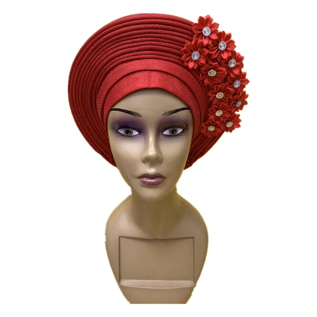 African Turban Cap With Flower On Top Nigeria Head Wrap Women Cap Nigerian Auto Gele Already Made Best Selling 1pcs/pack