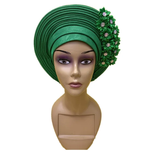 African Turban Cap With Flower On Top Nigeria Head Wrap Women Cap Nigerian Auto Gele Already Made Best Selling 1pcs/pack