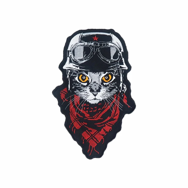 Red Blue Large Biker Kitty Embroidery Patches Pilot Cat Back Applique Iron on Motorcycle Jacket Vest DIY for Clothing Accessory