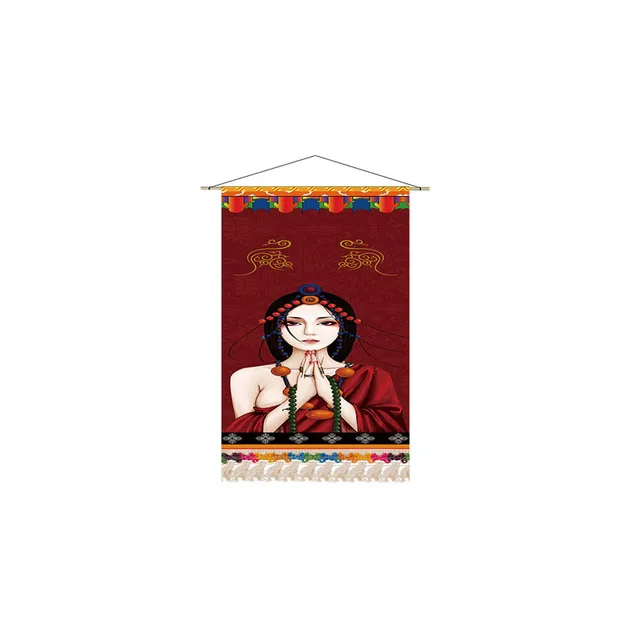 • Style Wall Hanging Tapestry Girl Printed Scroll Paintings Tibet Bedroom Art Poster Ethnic Home Decorative Tapestries