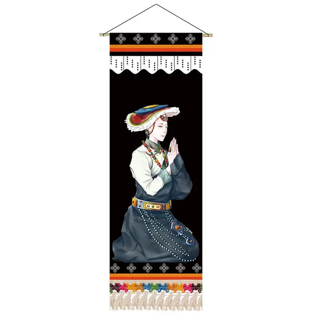 • Style Wall Hanging Tapestry Girl Printed Scroll Paintings Tibet Bedroom Art Poster Ethnic Home Decorative Tapestries
