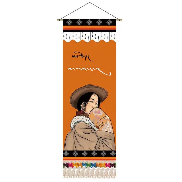 • Style Wall Hanging Tapestry Girl Printed Scroll Paintings Tibet Bedroom Art Poster Ethnic Home Decorative Tapestries