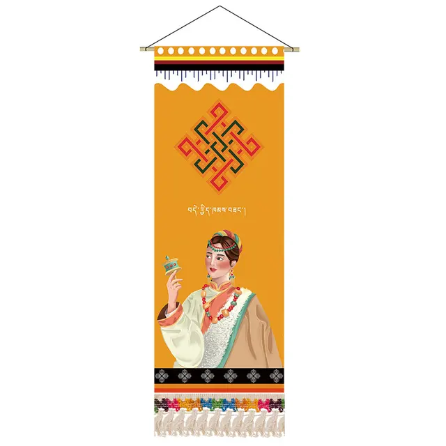 • Style Wall Hanging Tapestry Girl Printed Scroll Paintings Tibet Bedroom Art Poster Ethnic Home Decorative Tapestries