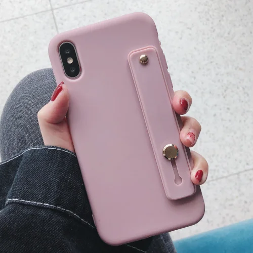 • Candy Colour Wristband Bracket Case For iphone11 12 13 Mini Pro Max 8 7 plus 6 For iphone X XR XS MAX Silicone Soft Cover