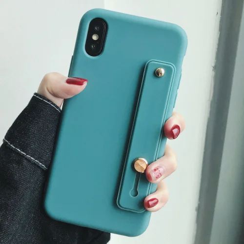• Candy Colour Wristband Bracket Case For iphone11 12 13 Mini Pro Max 8 7 plus 6 For iphone X XR XS MAX Silicone Soft Cover