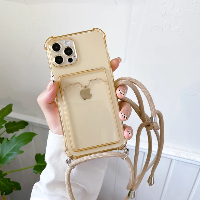 Crossbody Lanyard Hang Strap+Card Holder Case For iPhone 11 12 13 Pro Max Mini XS 8 7 Plus X XR SE 2020 Shockproof TPU Wallet Cover