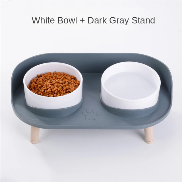 Cat Bowl Pet Double Bowls Feeder Waterer Kitten Dry Food Fruit Bowl Adjustable Height Elevated Puppy Drinker Prevent Overturning