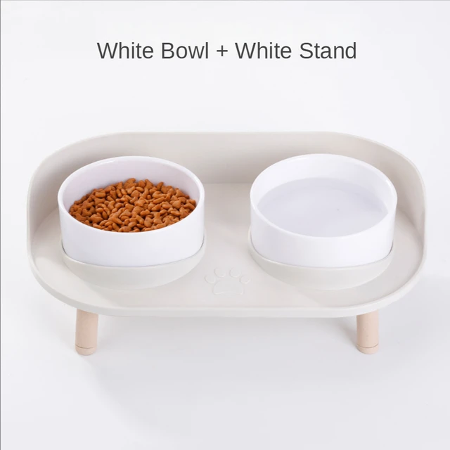 Cat Bowl Pet Double Bowls Feeder Waterer Kitten Dry Food Fruit Bowl Adjustable Height Elevated Puppy Drinker Prevent Overturning