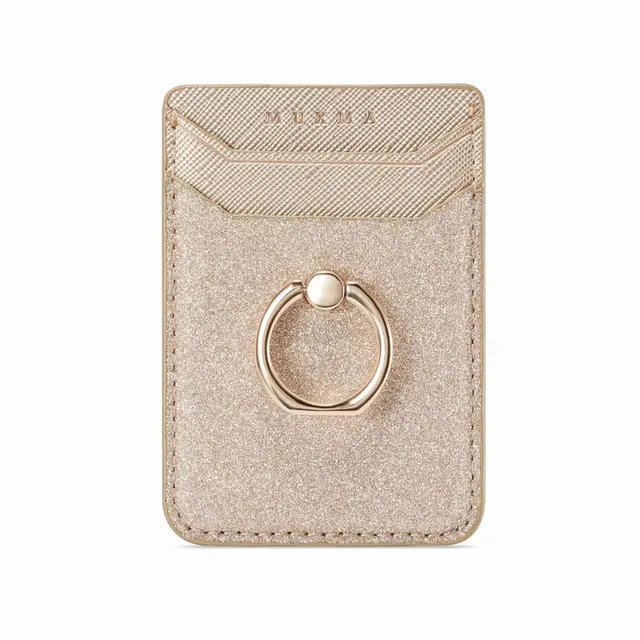 Cute Cell Phone Smartphone Ring Socket Holder Wallet Credit Card Pocket Adhesive Sticker Phone Pouch Bag Case Black Rose Gold