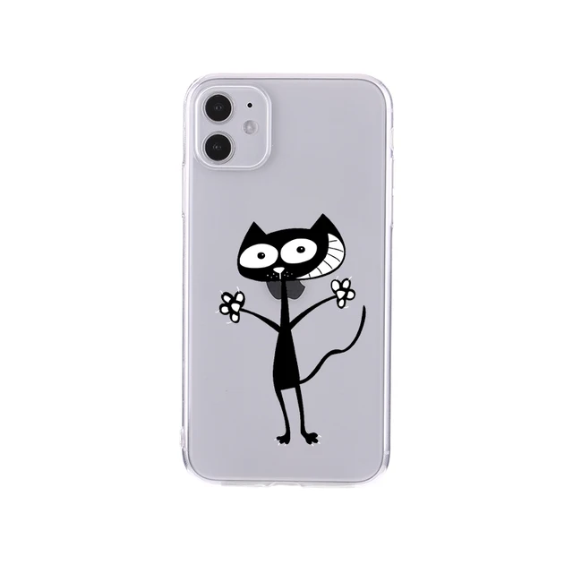 • Cartoons Black Cat Transparent Phone Cover For iPhone 13 11 12 Pro Max Mini XS XR X 7 8P Shockproof Clear Phone Case Funda