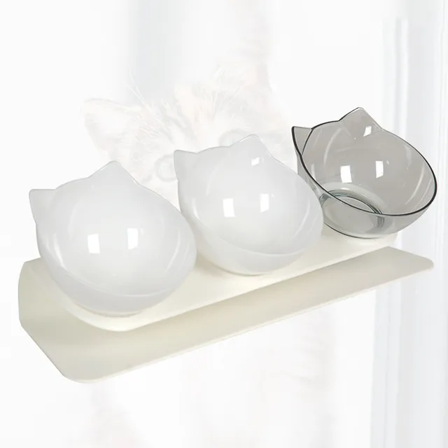 • Triple Cat Bowl With Stand 15 Tilted Dog Feeder Container High Elevated Pet Feeding Drinking Snack Bowls Cute Product