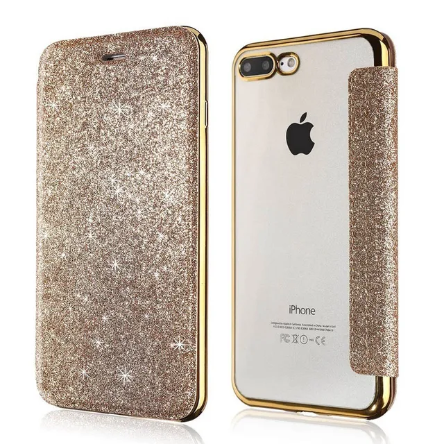 Glitter Leather Flip Wallet Case For iPhone 13 12 11 Pro XS Max XR X 7 8 Plus 6s Plus SE2020 Clear Bling Back TPU Case