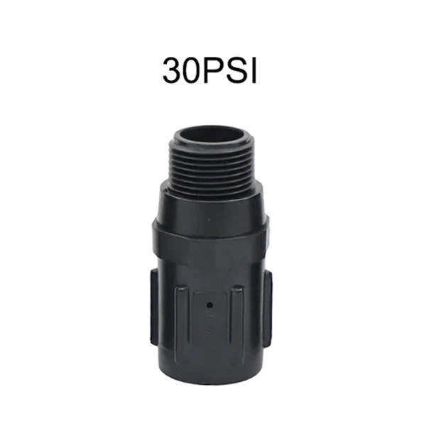 The preset pressure regulators (hose and pipe thread) are used to reduce and regulate the incoming pressure of a household’s water entering a drip irrigation or micro sprinkler system to the appropriate operating pressure of 15 ,20,25,30,45PSI, which is within the range of recommended operating pressures for a micro irrigation system. The pressure regulator’s design includes few moving plastic parts and a diaphragm which regulates itself in reaction to the overall system back pressure. Our pressure regulators offer exceptional pressure control and provide consistent outlet pressures over a wide range of incoming pressures.
