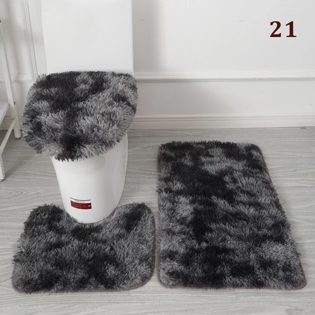 • Solid Color Plush Bathroom Mat Set Fluffy Hairs Bath Carpets Modern Home Toilet Lid Cover Rugs Kit Rectangle Floor Mats