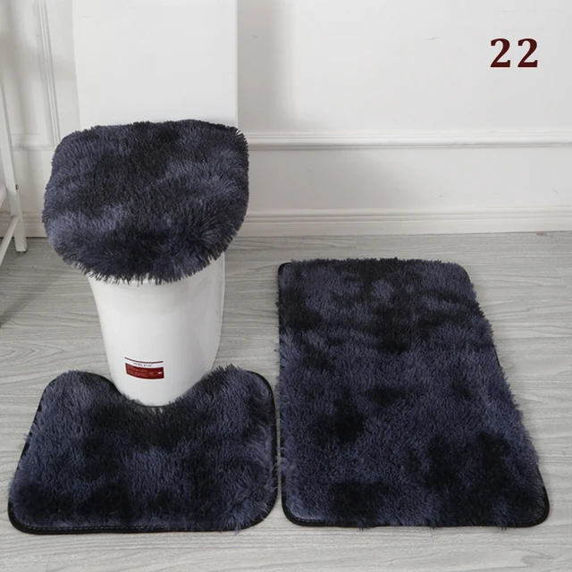 • Solid Color Plush Bathroom Mat Set Fluffy Hairs Bath Carpets Modern Home Toilet Lid Cover Rugs Kit Rectangle Floor Mats