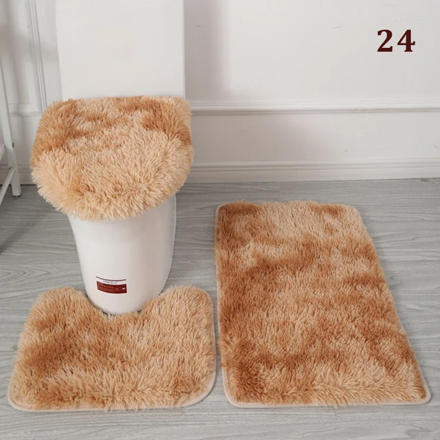 • Solid Color Plush Bathroom Mat Set Fluffy Hairs Bath Carpets Modern Home Toilet Lid Cover Rugs Kit Rectangle Floor Mats