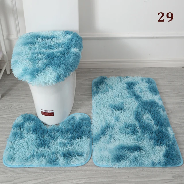 • Solid Color Plush Bathroom Mat Set Fluffy Hairs Bath Carpets Modern Home Toilet Lid Cover Rugs Kit Rectangle Floor Mats
