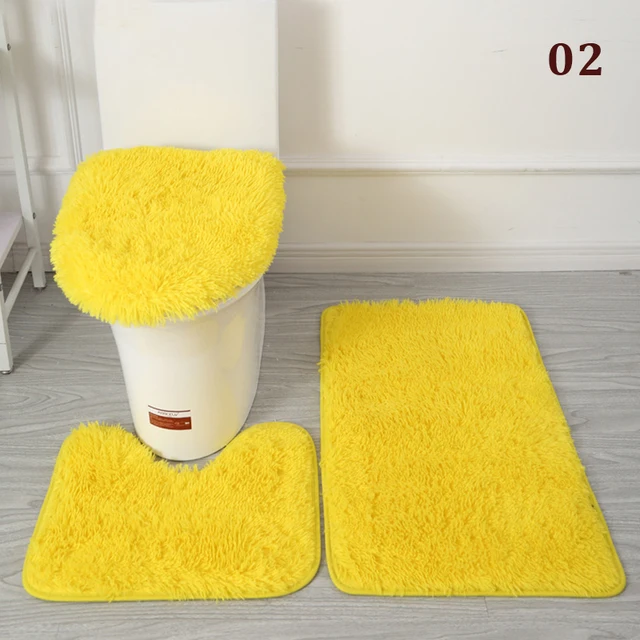 • Solid Color Plush Bathroom Mat Set Fluffy Hairs Bath Carpets Modern Home Toilet Lid Cover Rugs Kit Rectangle Floor Mats