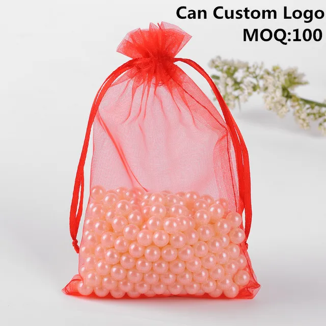 Organza Jewelry Bags Bolsitas De Regalo Para Boda Jewelry Package With Logo Tea Storage Bags 100pcs/lot Wholesale