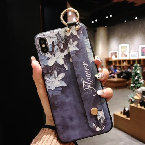 flowers Wirst Strap Soft TPU Case For iphone 7 8 6S plus Case For iphone 12 Mini 11 13 Pro X XS MAX XR phone Holder Case