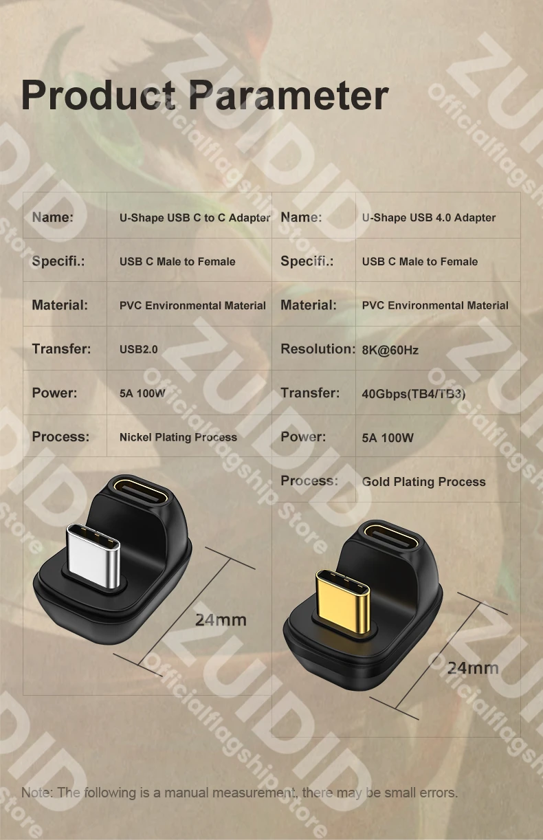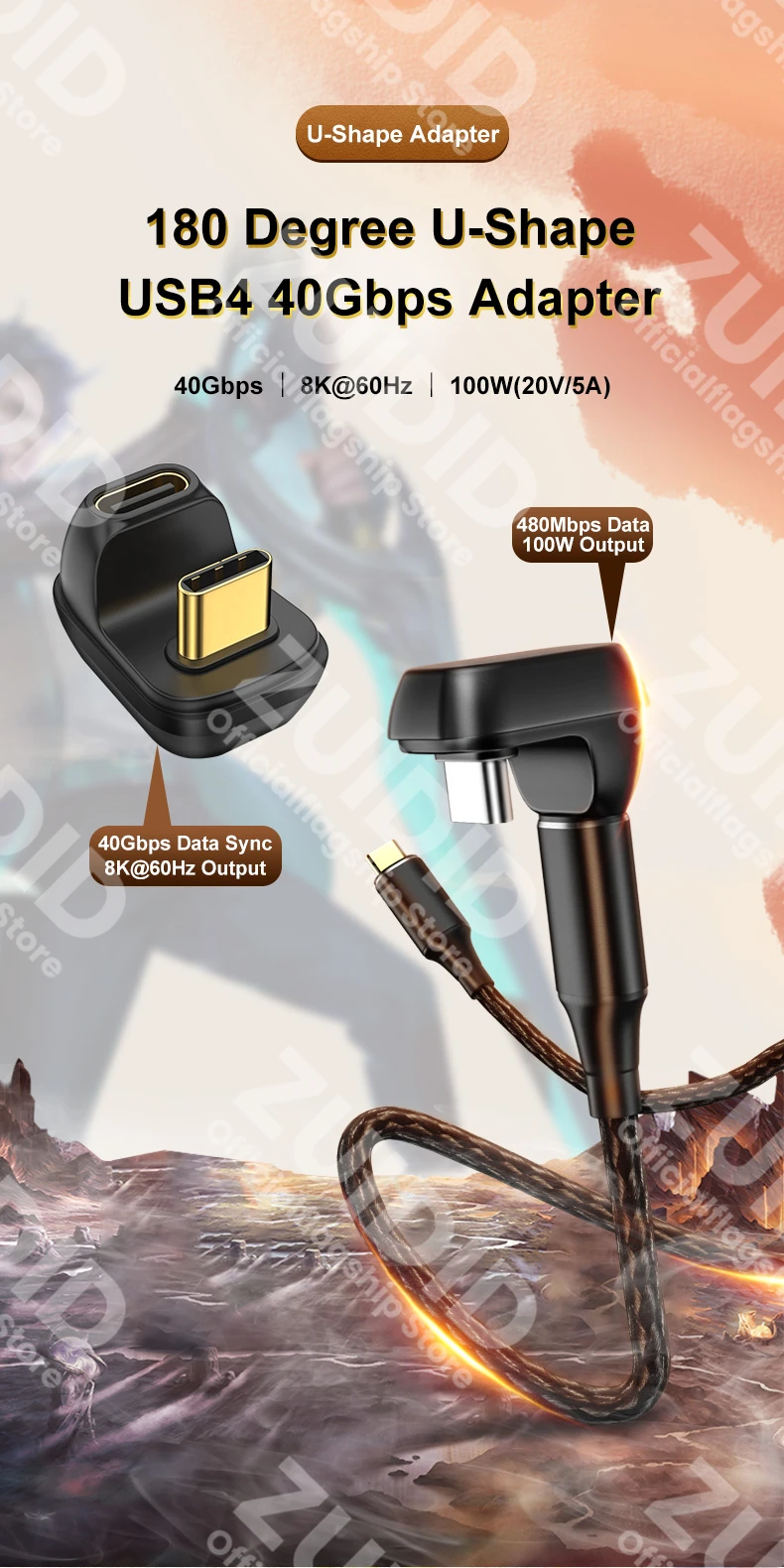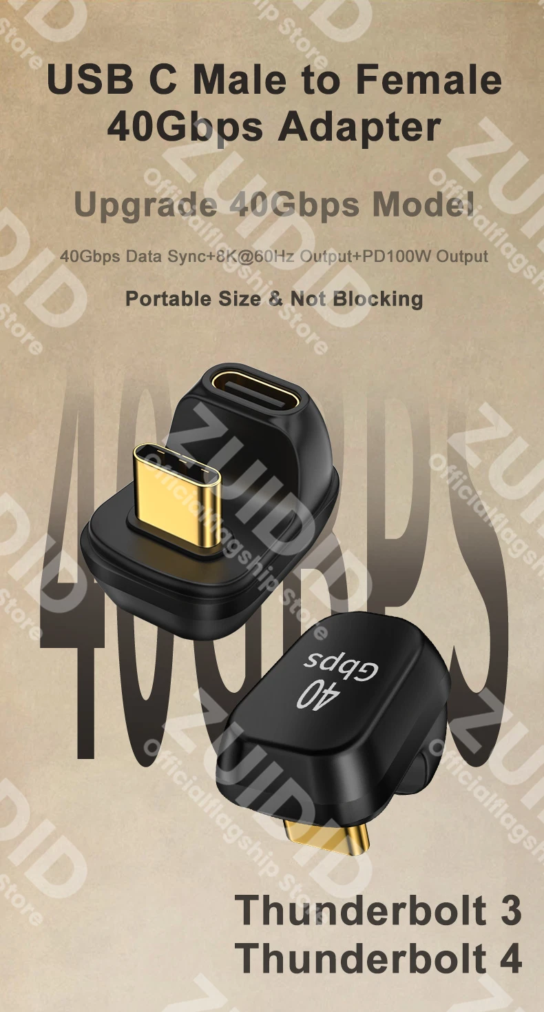 Mini USB4.0 40Gbps Adapter U-Shape Thunderbolt3 USB C to Type C 100W Fast Charging Converter 8K@60Hz USB Type C Data Adapter