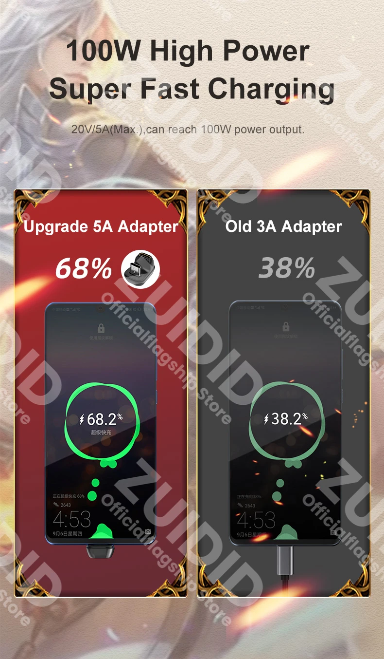 Note:need to use with USB c to c cable support 100W(20V/5A) to achieve 100W high power output