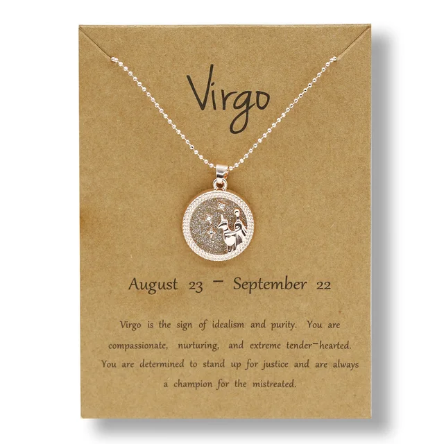 • Zodiac Constellations Necklace Geometric Round Pendant Rose Gold Chain Necklace Unisex Friendship Jewelry