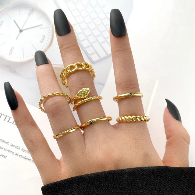• Gothic Heart Ring Set for Women Flame Pentagram Vintage Spades Ace Silver Plated Retro Charm Billiards Finger Jewelry