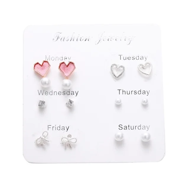 • Fashion 3/6 Pairs Women's Earrings Korean Heart Stud Earrings for Women Pearl Earring Set 2021 Earings Jewelry Brincos Gifts