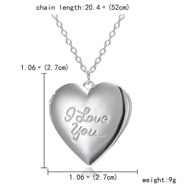 Silver Color Love Heart Locket Pendants for Women Men Openable Photo Frame Glossy Family Pet Picture Necklace Family Love Gift
