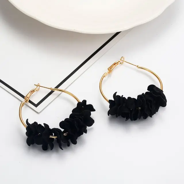 • Fashion Fabric Flower Drop Earrings For Women Statement Colorful Petal Circle Big Fancy Earring Jewelry