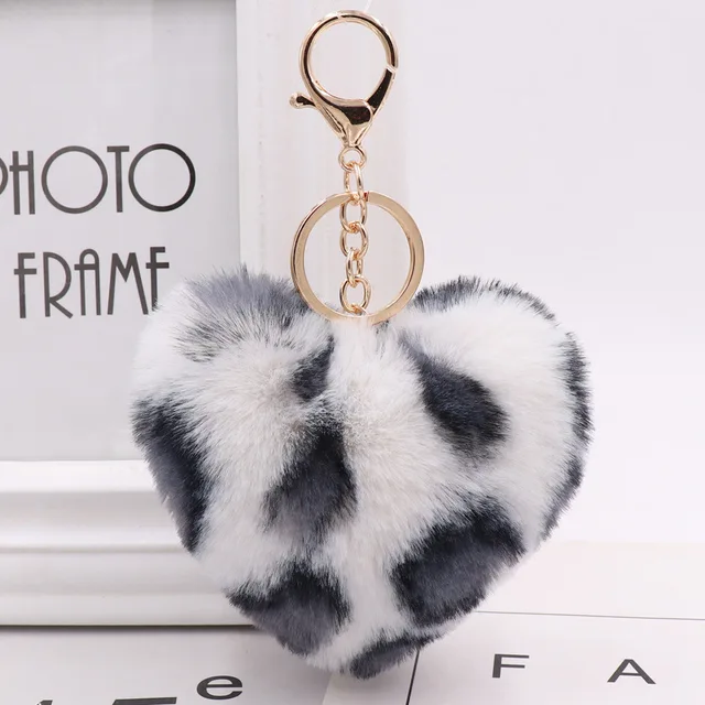 • Rabbit Fur Pom-pom Keychain Leopard-print Pom-pom Keychain Lady Mobile Phone Bag Key Ring Love Pendant Decoration