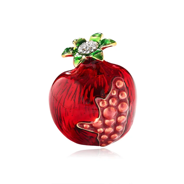 Trendy Enamel Fruit Shape Red Pomegranate Brooch for Women Green Leaf Cherry Brooches Suit Lapel Pin Clothing Scarf Badges