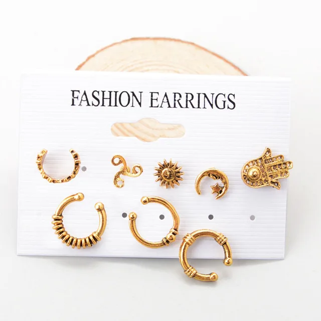 • Sale New Punk Style Earring Sets Ethnic Bohemia Ear Clip Stud Earrings For Women Feather Leaf Owl Earrings Wholesale 2022