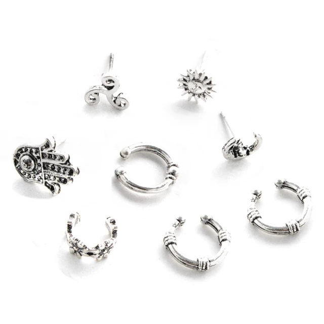 • Sale New Punk Style Earring Sets Ethnic Bohemia Ear Clip Stud Earrings For Women Feather Leaf Owl Earrings Wholesale 2022