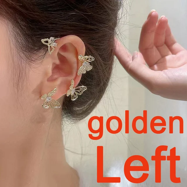 Exquisite Sparkling Zircon Butterfly Leaf Gold Plated Metal Ear Cuff Women Fashion Non Piercing Clip Earrings Girl Party Jewelry