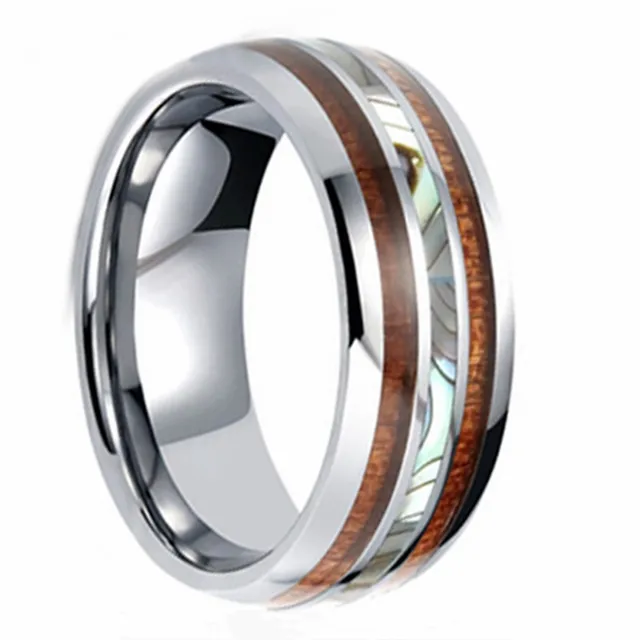 • Trend 8mm Blue Rose Gold Tungsten Carbide Rings Hawaiian Koa Abalone Shell Opal Inlay Ring Engagement Wedding Band Jewelry