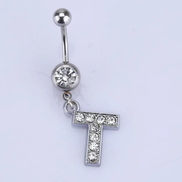 • 26 letter style Charming Body Piercing Crystal Rhinestone Inlaid Navel Belly Button Ring stainless steel jewelry
