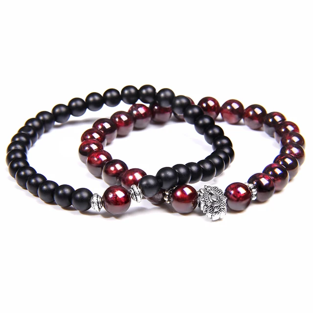 Men Bracelets Natural Garnet Beads Bracelet For Women Red Stone Bracelet Silver-platedCharm Yoga Balance Pulsera Couples Jewelry Gift
